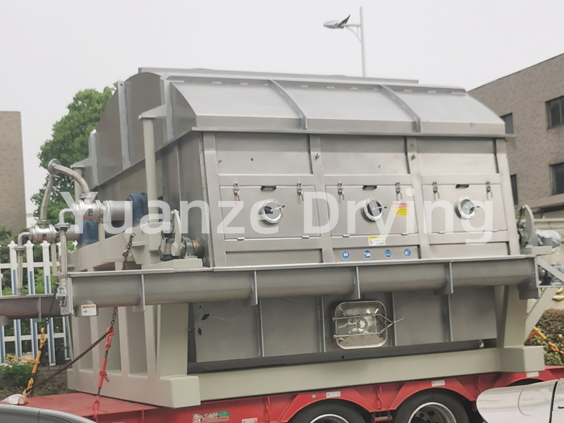 A drum dryer is an internally heated conductive rotating continuous drying equipment. The rotating drum adheres a thick material film through its lower material groove, and heat is transported to the inner wall of the drum through a pipeline, transmitted to the outer wall of the drum, and then transmitted to the material film, causing the moisture in the material film to evaporate, dehumidify, and dry the material containing moisture. The dried material is scraped off the drum by a scraper installed on the surface of the drum, and then transported to a screw conveyor placed below the scraper. The dry material is concentrated and packaged through the screw conveyor.