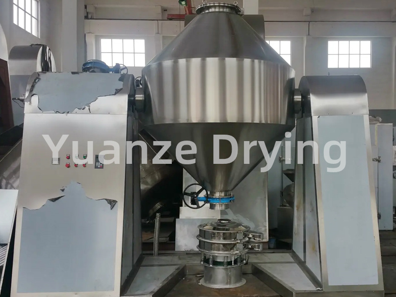 This machine transfers powder or granular materials through vacuum conveying or manual feeding into a double cone container. As the capacity continues to rotate, the materials undergo complex impact movements in the container, achieving uniform mixing. This machine saves energy, is easy to operate, has low labor intensity, and high work efficiency.