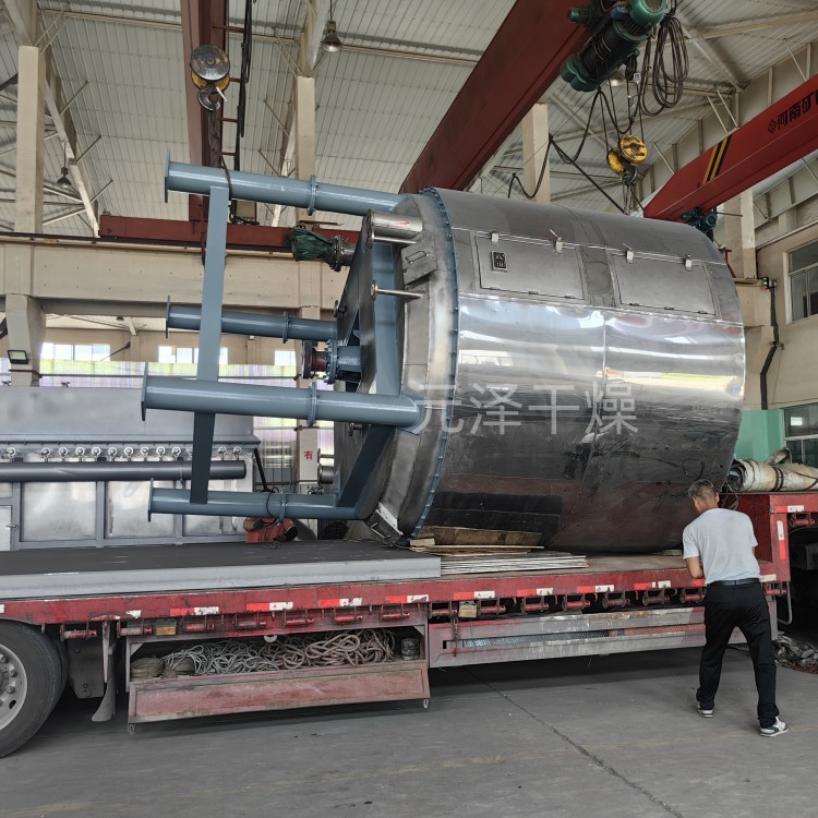 2.动力消耗低、噪音小。由于干燥过程中料层很薄,主轴转速低,物料传送系统所需的功率小,电耗很少,其全套干燥装置动力消耗仅是对流方式传热装置动力消耗的1/5~1/7,且噪音很小。