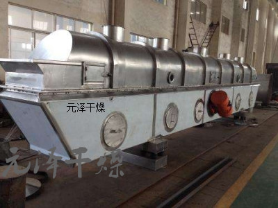 流化床干燥机物料自进料口进入机内, 在振动力作用下, 物料沿水平方向抛掷向前连续运动,热风向上穿过流化床同湿料换热后, 湿空气经旋风分离器除尘后由排风口排出, 干燥物料由排料口排出。