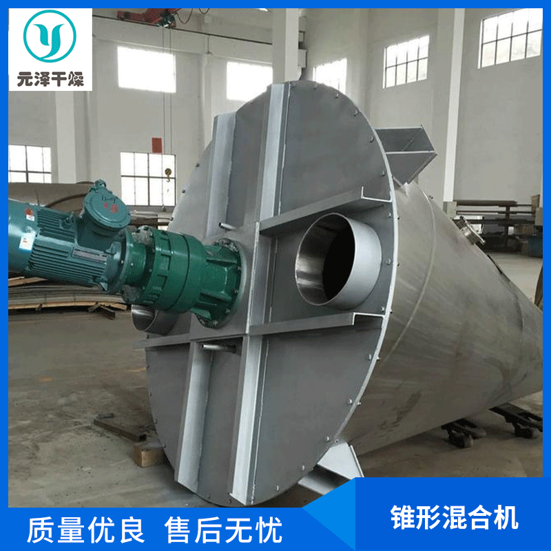 螺带真空干燥机是一种利用螺带将物料旋转提升及圆锥夹套、空心螺带内同时通入传热介质(如热水、导热油、蒸汽等),使加热后物料从四周提升并从中间下落,快速不断的循环翻转,并通过筒体内抽真空将水汽及时带走, 使物料在短时间内达到干燥和混合目的。