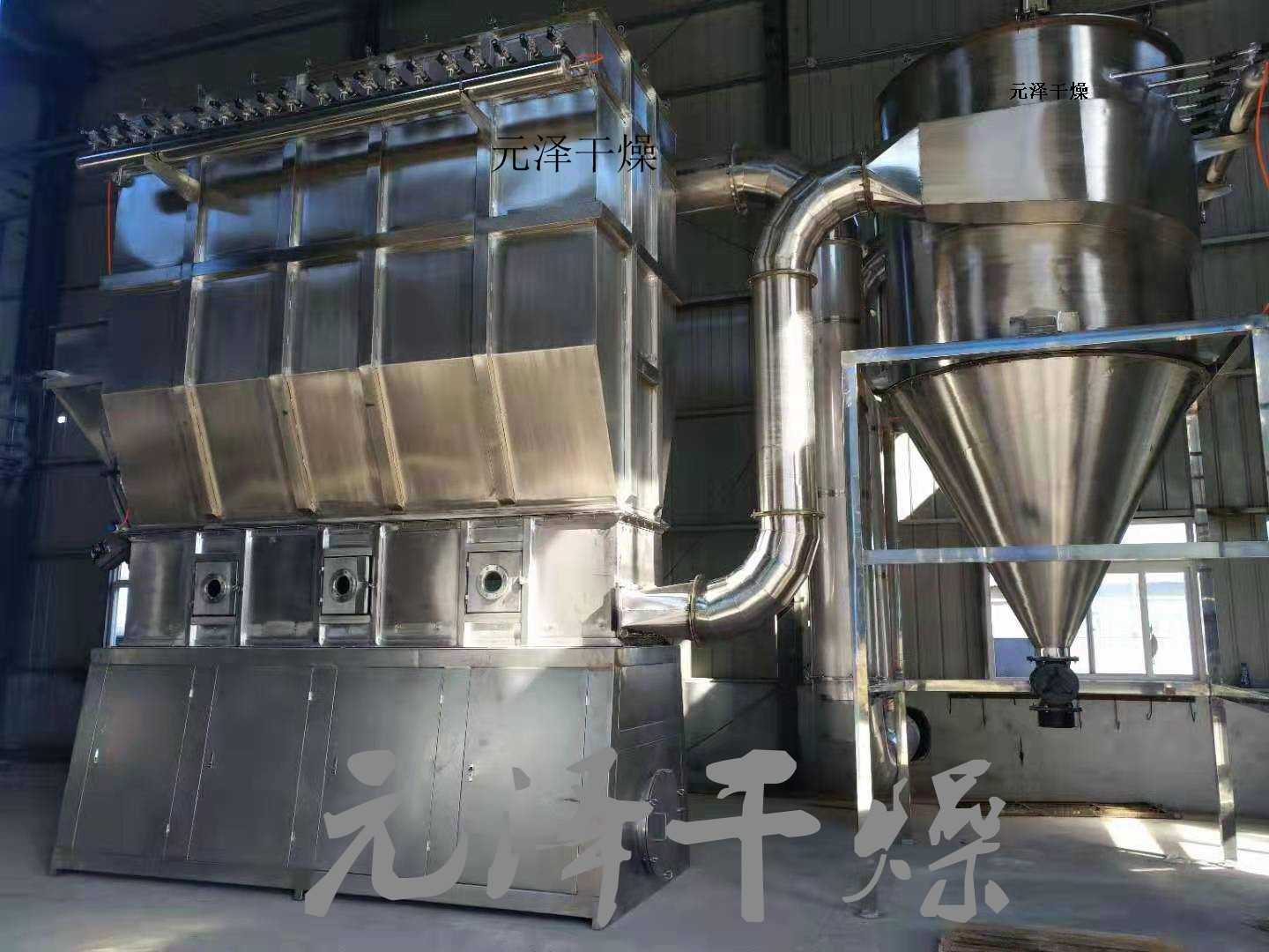 沸腾床干燥机可实行自动化生产,是连续式干燥设备。干燥速度快,温度低,能保证产品质量,符合药品生产GMP要求,蒸汽、电、热风炉均可配用。