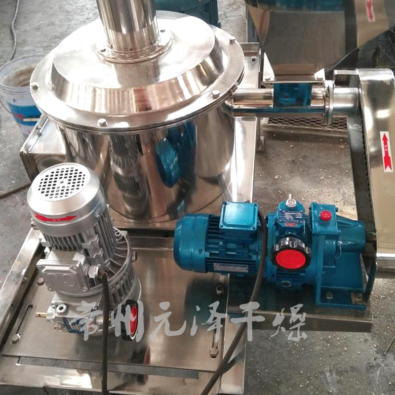 超微粉碎机是利用空气分离、重压研磨、剪切的形式来实现干性物料超微粉碎的设备。它由柱形粉碎室、研磨轮、研磨轨、风机、物料收集系统等组成。物料通过投料口进入柱形粉碎室,被沿着研磨轨做圆周运动的研磨轮碾压、剪切而实现粉碎。被粉碎的物料通过风机引起的负压气流带出粉碎室,进入物料收集系统,经过滤袋过滤,空气被排出,物料、粉尘被收集,完成粉碎。物料由料门经螺旋输送器进入粉碎室,被高速旋转的刀片剪切粉碎,通过负压风运的方法把物料运入旋风分离器,袋式除尘器、排出物料粉尘由吸尘箱经布袋过滤回收,生产过程中无粉尘飞扬,且能提高物料的利用率,降低企业成本。
