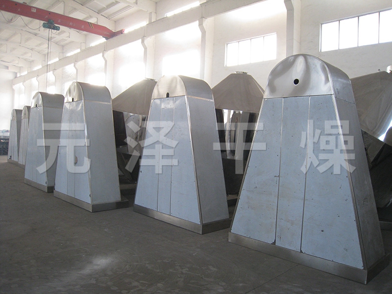 SZG系列双锥回转真空干燥机是集混合、干燥于一体的新型干燥机。将冷凝器,真空泵与干燥设备配套,组成真空干燥装置。(如不需要回收溶剂,冷凝器可不用)本机设计先进,内部结构简单,清扫容易,物料能全部排出,操作简便。能降低劳动强度,改善工作环境。同时因容器本身回转时物料亦转动,但器壁上不积料,故传热系数高,干燥速率大,不仅节约能源,而且物料干燥均匀充分,质量好。可广泛应用于制药、化工、食品、染料等行业的干燥。