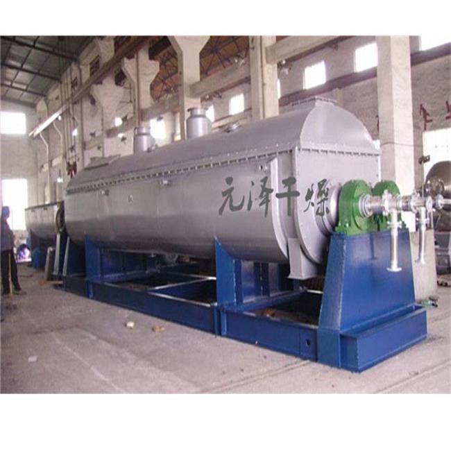 空心轴上密集排列着楔型中空浆叶,热介质经空心轴流经浆叶。单位有效容积内传热面积很大,热介质温度从-40℃到320℃,可以是水蒸汽,也可以是液体型:如热水、导热油等。间接传导加热,没有携带空气带走热量,热量均用来加热物料。热量损失仅为通过器体保温层向环境的散热。楔型浆叶传热面具有自清洁功能。物料颗粒与楔型面的相对运动产生洗刷作用,能够洗刷掉楔型面上附着物料,使运转中一直保持着清洁的传热面。浆叶干燥机的壳体为Ω型,壳体内一般安排二到四根空心搅拌轴。壳体有密封端盖与上盖,防止物料粉尘外泄而充分发挥作用。