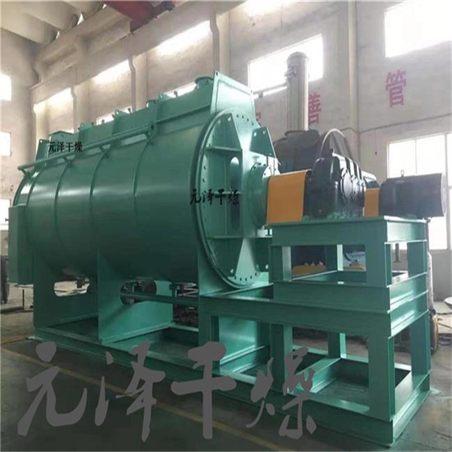 空心轴上密集排列着楔型中空浆叶,热介质经空心轴流经浆叶。单位有效容积内传热面积很大,热介质温度从-40℃到320℃,可以是水蒸汽,也可以是液体型:如热水、导热油等。间接传导加热,没有携带空气带走热量,热量均用来加热物料。热量损失仅为通过器体保温层向环境的散热。楔型浆叶传热面具有自清洁功能。物料颗粒与楔型面的相对运动产生洗刷作用,能够洗刷掉楔型面上附着物料,使运转中一直保持着清洁的传热面。浆叶干燥机的壳体为Ω型,壳体内一般安排二到四根空心搅拌轴。壳体有密封端盖与上盖,防止物料粉尘外泄而充分发挥作用。
