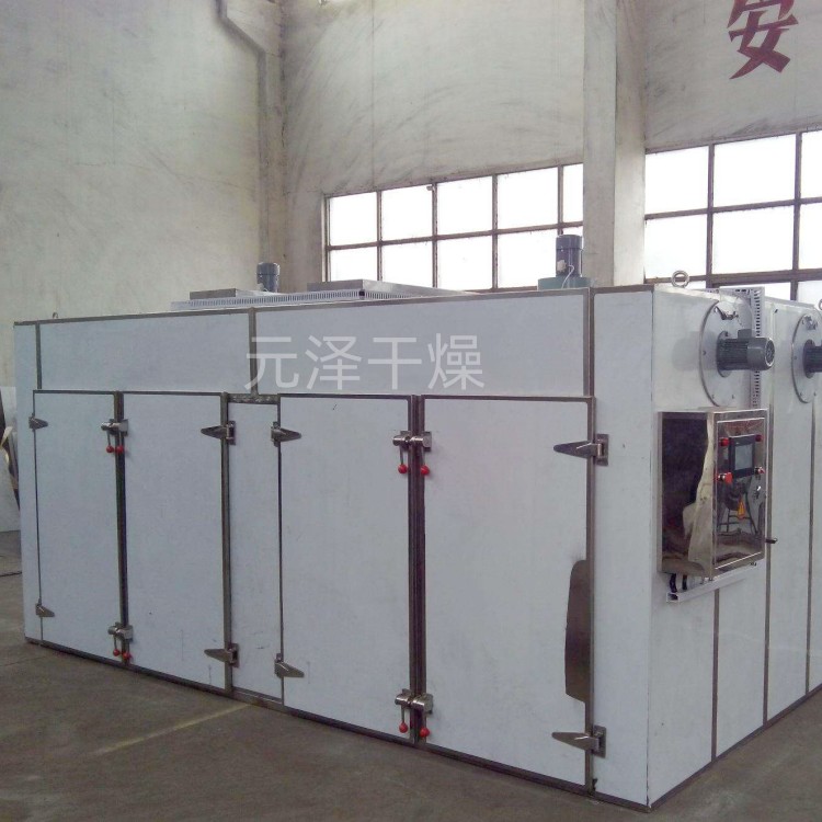 大部分热风在箱内循环,热效率高,节约能源。利用强制通风作用,箱内设有可调式分风板,物料干燥均匀,热源可采用蒸汽、热水、电、远红外,选择广泛。整机噪音小,运转平衡。温度自控,安装维修方便。适用范围广,可干燥各种物料,是通用干燥设备。