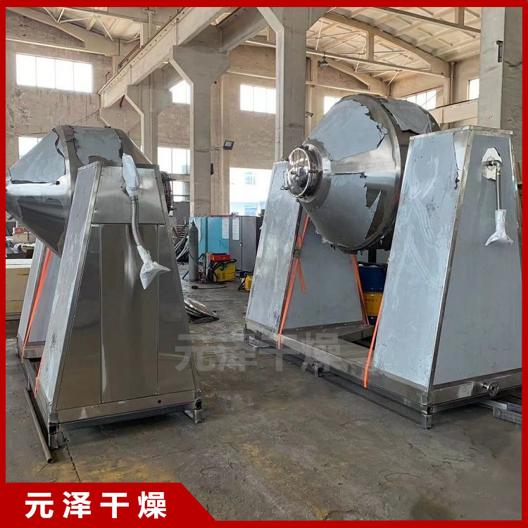 SZG系列双锥回转真空干燥机是集混合、干燥于一体的新型干燥机。将冷凝器,真空泵与干燥设备配套,组成真空干燥装置。(如不需要回收溶剂,冷凝器可不用)本机设计先进,内部结构简单,清扫容易,物料能全部排出,操作简便。能降低劳动强度,改善工作环境。同时因容器本身回转时物料亦转动,但器壁上不积料,故传热系数高,干燥速率大,不仅节约能源,而且物料干燥均匀充分,质量好。可广泛应用于制药、化工、食品、染料等行业的干燥。
