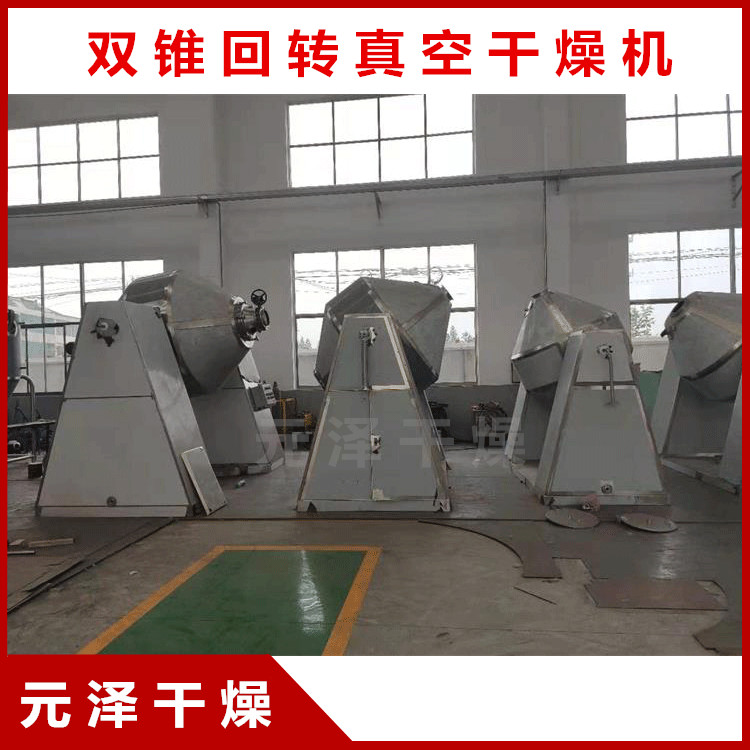 SZG系列双锥回转真空干燥机是集混合、干燥于一体的新型干燥机。将冷凝器,真空泵与干燥设备配套,组成真空干燥装置。(如不需要回收溶剂,冷凝器可不用)本机设计先进,内部结构简单,清扫容易,物料能全部排出,操作简便。能降低劳动强度,改善工作环境。同时因容器本身回转时物料亦转动,但器壁上不积料,故传热系数高,干燥速率大,不仅节约能源,而且物料干燥均匀充分,质量好。可广泛应用于制药、化工、食品、染料等行业的干燥。