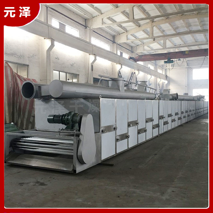 单层带式干燥机是穿流连续式干燥设备,用于透气性较好的片状、条状、颗粒状物料的干燥,对于脱水蔬菜、中药饮片等类含水率高、而温度不允许高的物料尤为合适;该系列干燥机具有干燥速度快、蒸发强度高、产品质量好的优点,对脱水滤饼状的膏状物料,需经造粒或制成棒状后亦可干燥。