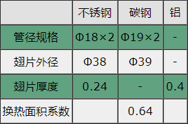 热源为热水蒸汽或导热油时翅片规格