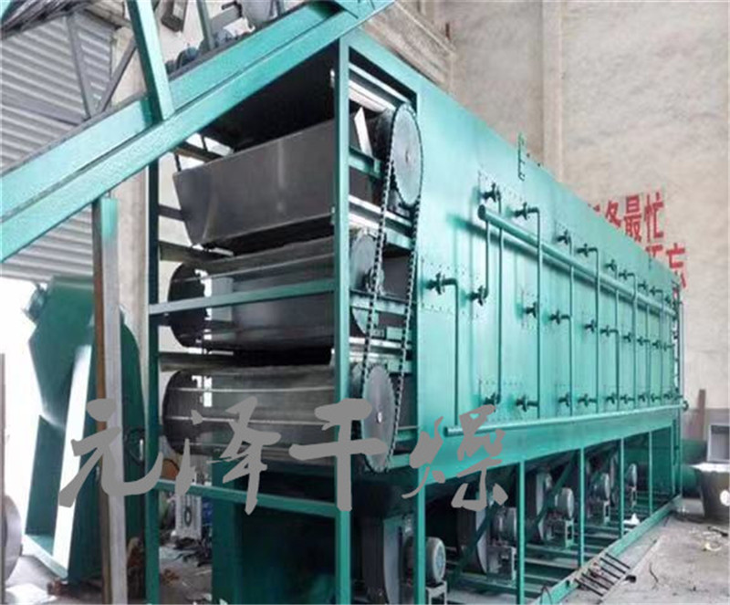 带式干燥机是穿流连续式干燥设备,用于透气性较好的片状、条状、颗粒状物料的干燥,对于脱水蔬菜、中药饮片等类含水率高、而温度不允许高的物料尤为合适;该系列干燥机具有干燥速度快、蒸发强度高、产品质量好的优点,对脱水滤饼状的膏状物料,需经造粒或制成棒状后亦可干燥。