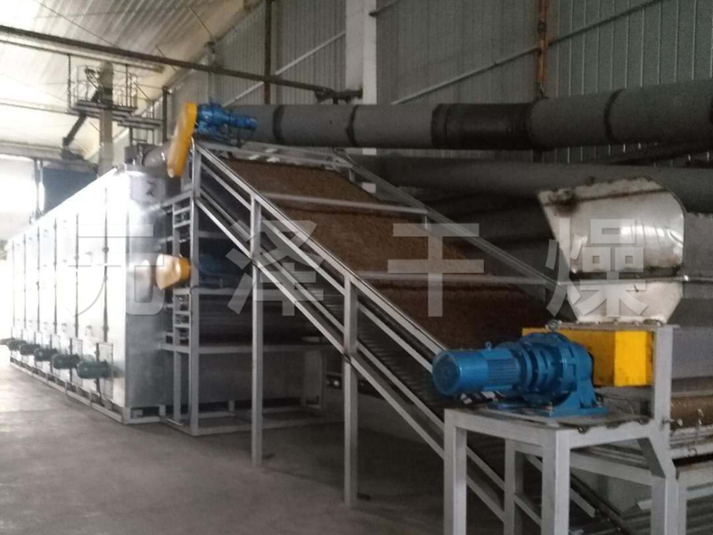 干燥机工作时,冷空气通过热交换器进行加热,采用科学合理循环方式,使热空气穿流通过床面上的被干燥物料进行均匀的热质交换,机体各单元内热气流在循环风机的作用下进行热风循环,后排出低温高湿度的空气,平稳高效地完成整个干燥过程。