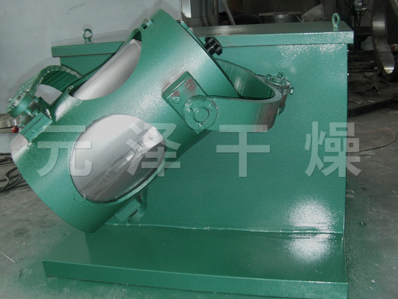 结构:该机由机座、传动系统、电器控制系统、多向运动机构、混合筒等部件组成。与物料直接接触的混合筒采用优质不锈钢材料制造,桶体内外壁均经镜面抛光。
