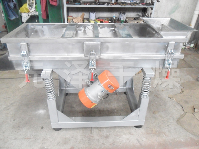 本机上部采用快拆式手柄,把整机连成一个整体,上盖全密封、有效防止物料在过筛时由于振动而产生粉尘飞扬。筛体下部安装振动电机,有效保证了物料的结构紧凑,下部采用弹簧减振,使整机在平稳状态下工作。下面底座采用可调式,可调节正在过筛时的筛面倾斜角度,根据物料特性以取得 佳过筛效果。