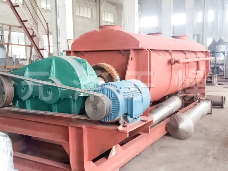 高岭土专用桨叶干燥机的空心轴上密集排列着楔型中空浆叶,热介质经空心轴流经浆叶。单位有效容积内传热面积很大,热介质温度从-40℃到320℃,可以是水蒸汽,也可以是液体型:如热水、导热油等。间接传导加热,没有携带空气带走热量,热量均用来加热物料。热量损失仅为通过器体保温层向环境的散热。楔型浆叶传热面具有自清洁功能。物料颗粒与楔型面的相对运动产生洗刷作用,能够洗刷掉楔型面上附着物料,使运转中一直保持着清洁的传热面。浆叶干燥机的壳体为Ω型,壳体内一般安排二到四根空心搅拌轴。壳体有密封端盖与上盖,防止物料粉尘外泄而充分发挥作用。