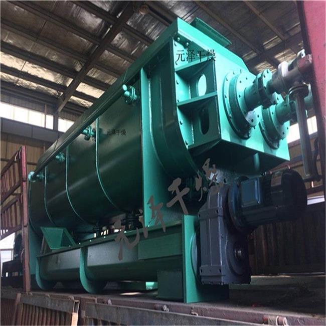 空心轴上密集排列着楔型中空浆叶,热介质经空心轴流经浆叶。单位有效容积内传热面积很大,热介质温度从-40℃到320℃,可以是水蒸汽,也可以是液体型:如热水、导热油等。间接传导加热,没有携带空气带走热量,热量均用来加热物料。热量损失仅为通过器体保温层向环境的散热。楔型浆叶传热面具有自清洁功能。物料颗粒与楔型面的相对运动产生洗刷作用,能够洗刷掉楔型面上附着物料,使运转中一直保持着清洁的传热面。浆叶干燥机的壳体为Ω型,壳体内一般安排二到四根空心搅拌轴。壳体有密封端盖与上盖,防止物料粉尘外泄而充分发挥作用。