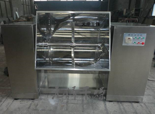 槽型混合机用以混合粉状或糊状的物料,使不同质物料混合均匀。是卧式槽形单桨混合,搅抖桨为通轴式,便于清洗。与物体接触处全采用不锈钢制成,有良好的耐腐蚀性,混合槽可自动翻转倒料。