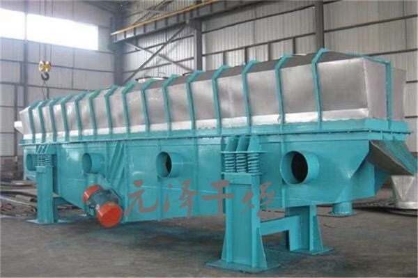 流化床干燥机是由振动电机产生激振力使机器产生微小的振动,物料在给定方向的激振力的作用下跳跃前进。同时流化床底部输入的热风使物料处于流化状态,物料与热风充分接触,从而达到理想的干燥效果.