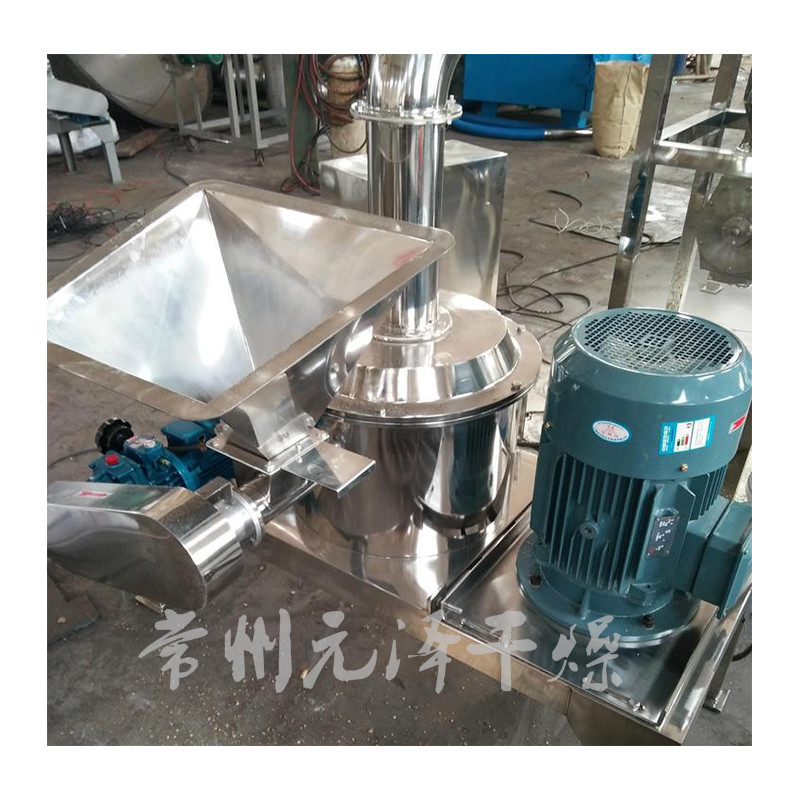 超微粉碎机是利用空气分离、重压研磨、剪切的形式来实现干性物料超微粉碎的设备。它由柱形粉碎室、研磨轮、研磨轨、风机、物料收集系统等组成。物料通过投料口进入柱形粉碎室,被沿着研磨轨做圆周运动的研磨轮碾压、剪切而实现粉碎。被粉碎的物料通过风机引起的负压气流带出粉碎室,进入物料收集系统,经过滤袋过滤,空气被排出,物料、粉尘被收集,完成粉碎。物料由料门经螺旋输送器进入粉碎室,被高速旋转的刀片剪切粉碎,通过负压风运的方法把物料运入旋风分离器,袋式除尘器、排出物料粉尘由吸尘箱经布袋过滤回收,生产过程中无粉尘飞扬,且能提高物料的利用率,降低企业成本。