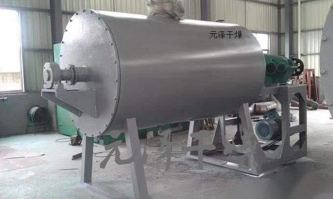 主要结构为带夹套的卧式圆筒容器,装有低速搅拌轴,轴上装有按一定方向排列的耙齿。搅拌轴有两种形式,一种为不加热的耙齿轴,另一种为可通入 之热介质的中空耙齿轴。夹套内通入加热介质(热水、热油)。筒体内加入定量的湿物料,耙齿轴对物料进行搅拌,使物料加热均匀,耙齿轴在时间继电器的控制下,按一定时间间隔要求按正转-停止-反转-停止-正转运行,运行周期由用户根据物料的工艺操作条件来设定。筒体中被干燥的物料在耙齿轴有规律的搅拌下,周而复始,直至物料被干燥到工艺要求。内筒体上部安置有真空接口,接入真空系统,使被干燥物料在负压下加热干燥,可保证干燥物料在低温下加热,不致破坏物料的物化性质。物料达到干燥要求后,打开筒体下部的放料阀,让物料在耙齿轴的搅拌下向中间移动进行出料。