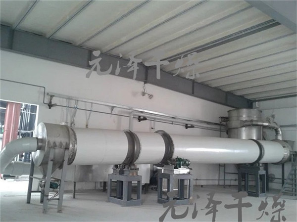 滚筒干燥机、回转筒干燥机处理量大,操作简便,烘干效果好,被干燥的物料与热风直接接触,以对流传热的方式进行干燥。按照热风与物料之间的流动方向,分为并流式和逆流式。在并流式中热风与物料移动方向相同,入口处温度较高的热风与湿含量较高的物料接触。因物料处于表面汽化阶段,故产品温度仍然大致保持湿球温度。
