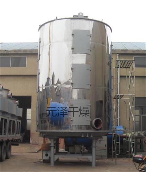 湿物料自加料器连续地加到干燥器上部层干燥盘上,带有耙叶的耙臂作回转运动使耙臂作回转运动使耙叶连续地翻抄物料。物料沿指数螺旋线流过干燥盘表面,在小干燥盘上的物料被移送到外缘,并在外缘落到下方的大干燥盘外缘,在大干盘上物料向里移动并从中间落料口落如下一层小干燥盘中。大小干燥盘上下交替排列,物料得以连续地流过整个干燥器。中空的干燥盘内通入加热介质,加热介质形式有饱和蒸汽、热水和导热油,加热介质由干燥盘的一端进入,从另一端导出。已干物料从后一层干燥盘落到壳体的底层,后被耙叶移送到出料口排出。湿份从物料中逸出,由设在顶盖上的排湿口排出,真空型盘式干燥器的湿气由设在顶盖上的真空泵口排出。从底层排出的干物料可直接包装。通过配加翅片加热器、溶剂回收冷凝器、袋式除尘器、干料返混机构、引风机等辅机,可提高其干燥的生产能力,干燥膏糊状和热敏性物 料,可方便地回收溶剂,并能进行热解和反应操作。
