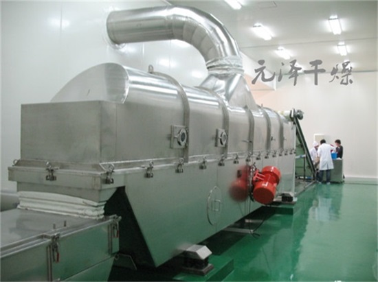 流化床干燥机是由振动电机产生激振力使机器产生微小的振动,物料在给定方向的激振力的作用下跳跃前进。同时流化床底部输入的热风使物料处于流化状态,物料与热风充分接触,从而达到理想的干燥效果.