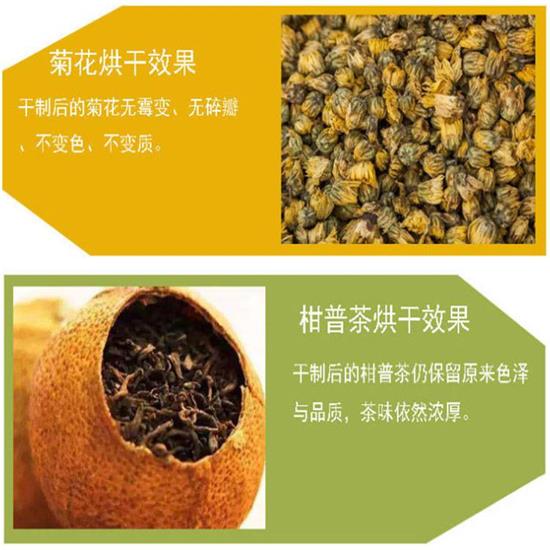 海藻、脱水蔬菜、枣、颗粒饲料、味精、鸡精、椰蓉、有机颜色、合成橡胶、丙烯纤维、药品、药材、小木制品、塑料制品、电子元器件老化、固化等。
