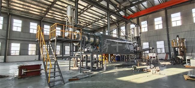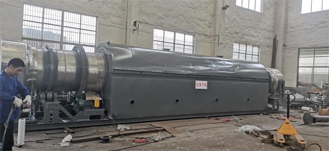 主要由供热源、上料机、进料机、回转滚筒、出料机、引风机、卸料器和配电柜构成;脱水后的湿物料从干燥机一端投入后,在内筒均布的抄板器翻动下,物料在干燥器内均匀分布与分散,并与并流(逆流)的热空气充分接触,加快了干燥传热,传质推动力。在干燥过程中,物料在带有倾斜度的抄板和热气流的作用下,可调控地运动至干燥机另一段星形卸料阀排出成品。