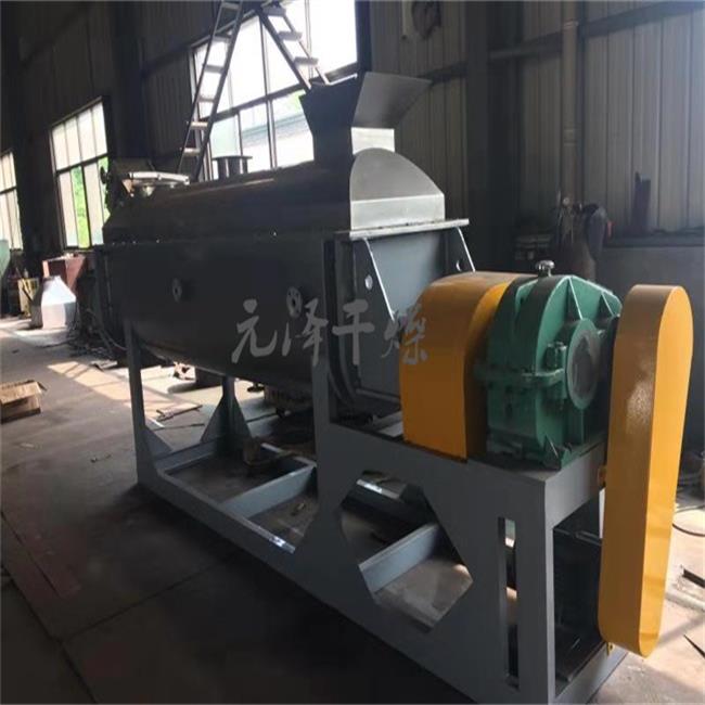 空心轴上密集排列着楔型中空桨叶,热介质经空心轴流经桨叶。单位有效容积内传热面积很大,热介质温度从-40℃到320℃,可以是水蒸汽,也可以是液体型:如热水、导热油等。间接传导加热,没有携带空气带走热量,热量均用来加热物料。热量损失仅为通过器体保温层向环境的散热。楔型桨叶传热面具有自清洁功能。物料颗粒与楔型面的相对运动产生洗刷作用,能够洗刷掉楔型面上附着物料,使运转中一直保持着清洁的传热面。桨叶干燥机的壳体为Ω型,壳体内一般安排二到四根空心搅拌轴。壳体有密封端盖与上盖,防止物料粉尘外泄而充分发挥作用。