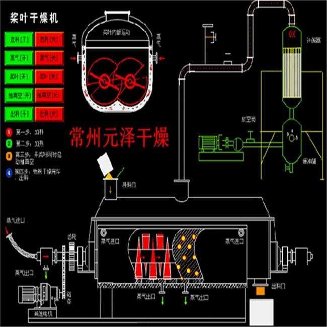 桨叶干燥机已成功地用于食品、化工、石化、染料、工业污泥等领域。设备传热、冷却、搅拌的特性使之可以完成以下单元操作:燃烧(低温)、冷却、干燥(溶剂回收)加热(融化)、反应和灭菌。搅拌桨叶同时又是传热面,使单位有效容积内传热面积增大,缩短了处理时间。楔型桨叶传热面又具有自清洁功能。压缩--膨胀搅拌功能使物料混和均匀。物料沿轴向成'活塞流'运动,在轴向区间内,物料的温度、湿度、混合度梯度很小。用导热油做热介质桨叶干燥机可完成低温燃烧工作。如:二水硫酸钙(Ca2SO4·2H2O) 燃烧转化为半水硫酸钙(Ca2SO4·1/22H2O)。碳酸氢钠(NaHCO3)经煅烧转化为纯碱(Na2HCO3)等。通入冷却介质,如水、冷却盐水等即可用来冷却。如:使用于纯碱行业的桨叶式凉碱机,取代老式的空气冷却凉碱机,节省了能源及尾气处理设备,降低了操作费用。干燥,设备主要的功能,不使用热空气,使溶剂回收、能源消耗、环境控制处于易处理的理想状态。对需回收溶剂、易燃易氧化热敏性物料尤为适应。已广泛用于精细化工、石化、染料行业。轴向区间内,温度、湿度、混合度的均匀性,使得设备可用来加热或融化,或进行一些固体物料反应。在复合肥及变性淀粉行业均已成功使用。桨叶干燥机可用来对食物和面粉进行灭菌处理。单位有效容积内大的加热面积,很快就将物料加热到灭菌温度,避免了长时间加热而改变物料品质。