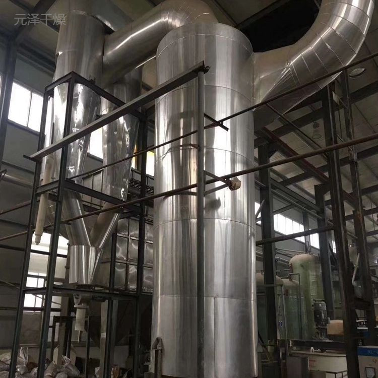 气流干燥机是利用高速流动的热气流使湿淀粉悬浮在其中。具有传热系数高,传热面积大,干燥时间短等特点。气流干燥也称"瞬间干燥"是固体流态化中稀相输送在干燥方面的应用。该法是使加热介质和待干燥固体颗粒直接接触,并使待干燥固体颗粒悬浮于流体中,因而两相接触面积大,强化了传热传质过程,广泛用于散状物料的干燥单元操作。